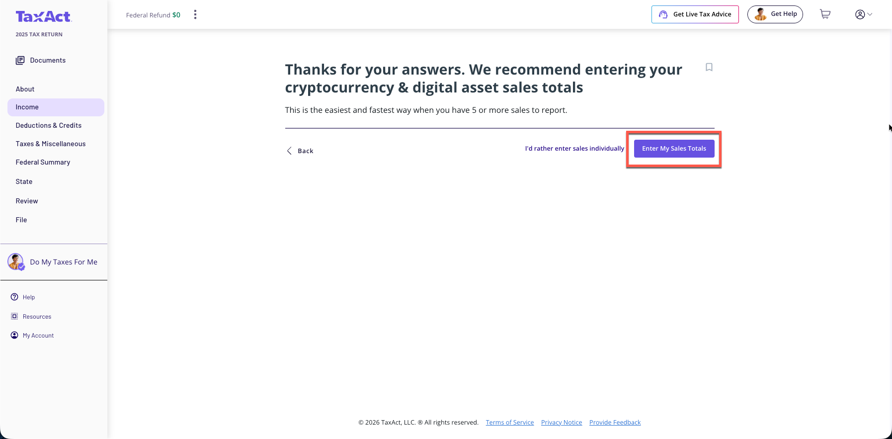 From within your TaxAct return, click Federal.
